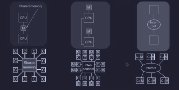 Questi sistemi sono MIMD (Multiple Instruction, Multiple Data), ovvero dove abbiamo più processori autonomi che lavorano indipendentemente (ognuno esegue le sue istruzioni e i suoi dati). Inoltre la comunicazione avviene tramite lo scambio di messaggi, quindi le principali differenze tra MIMD risiedono nella base del tempo, nella scala delle distanze e nell’organizzazione logica utilizzata.