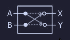 Questo switch ha 2 ingressi e 2 uscite, infatti i messaggi che arrivano da ognuno dei due input possono essere indirizzati verso ognuna delle due uscite.