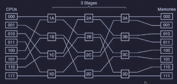 Una progettazione di multiprocessori completamente differente è basato su switch (2 input e 2 output).