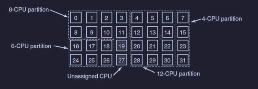 Immaginiamo di prendere la memoria RAM del computer e tagliarla a fette fisse, come una torta. Assegniamo la prima fetta alla CPU 1, la seconda alla CPU 2, e così via. Ogni CPU accende il suo “personale” OS dentro la sua fetta di memoria.
