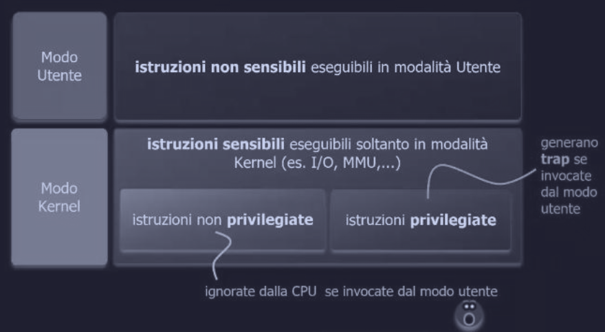 - altrimenti avviene una trap nel kernel e l’hypervisor può vedere se l’istruzione è stata inviata da: