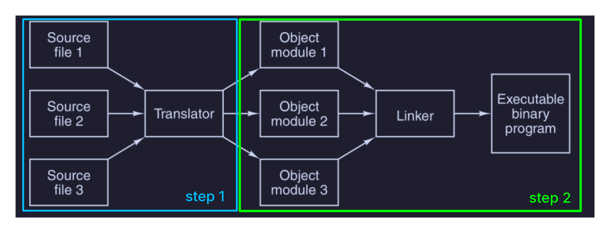 Quindi la funzione del linker è quella di unire le procedure tradotte separatamente e di collegarle tra di loro in modo da poterle eseguire come un’unica unità chiamata programma eseguibile binario.