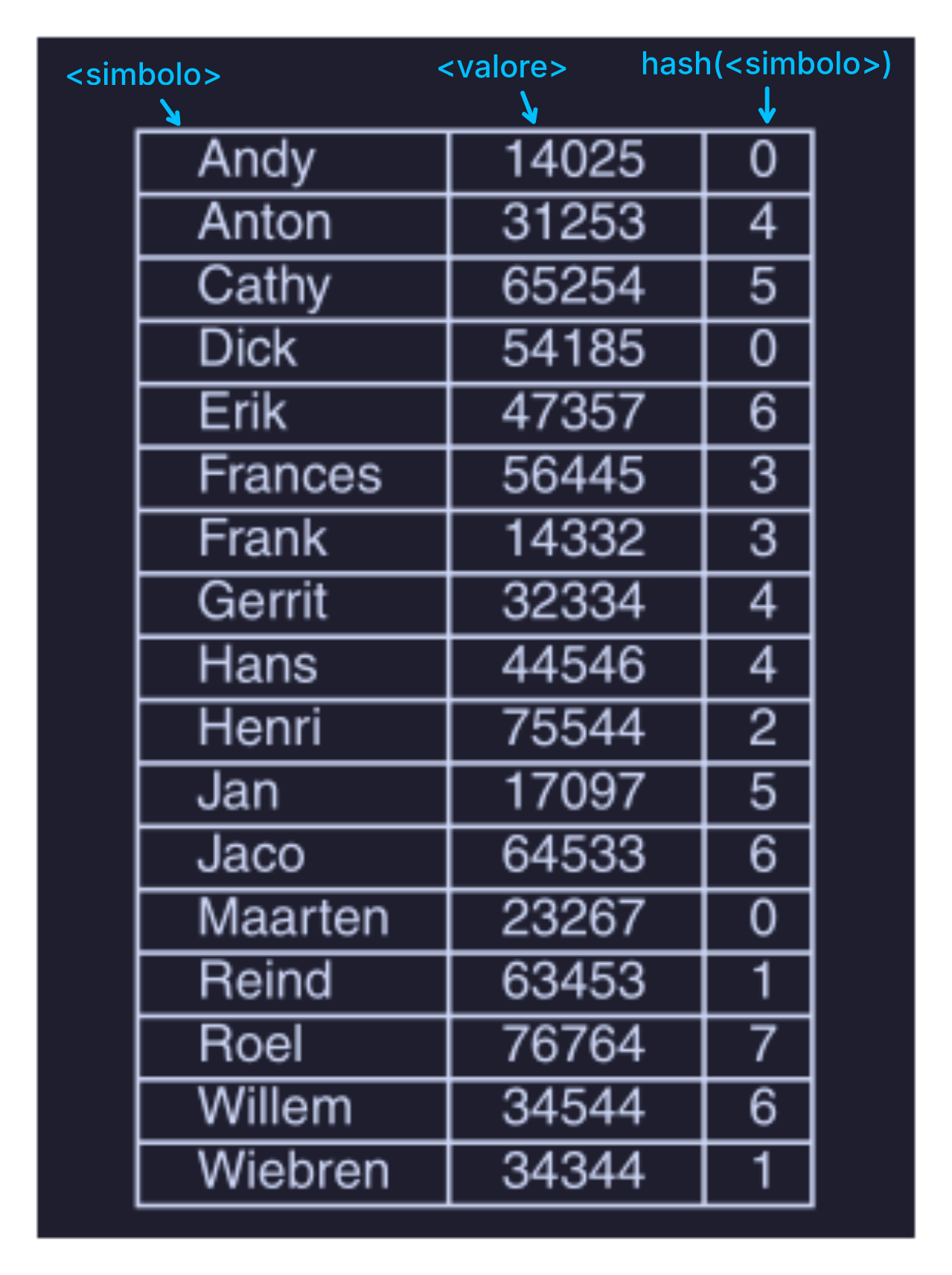 (<simbolo>,<valore>), il cui valore hash del<simbolo>vale . - con simboli e una tabella hash con posizioni, una linked list avrà come lunghezza media pari a