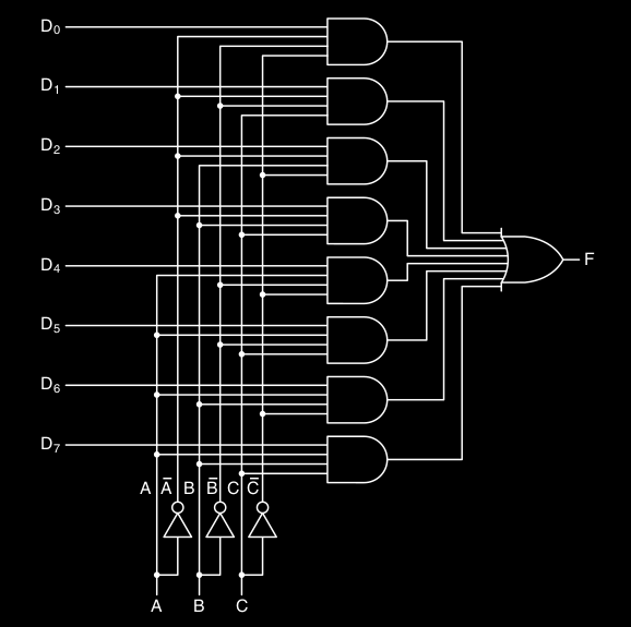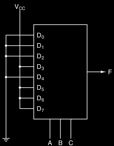 Usando quindi un multiplexer adatto possiamo implementare una qualsiasi funzione.