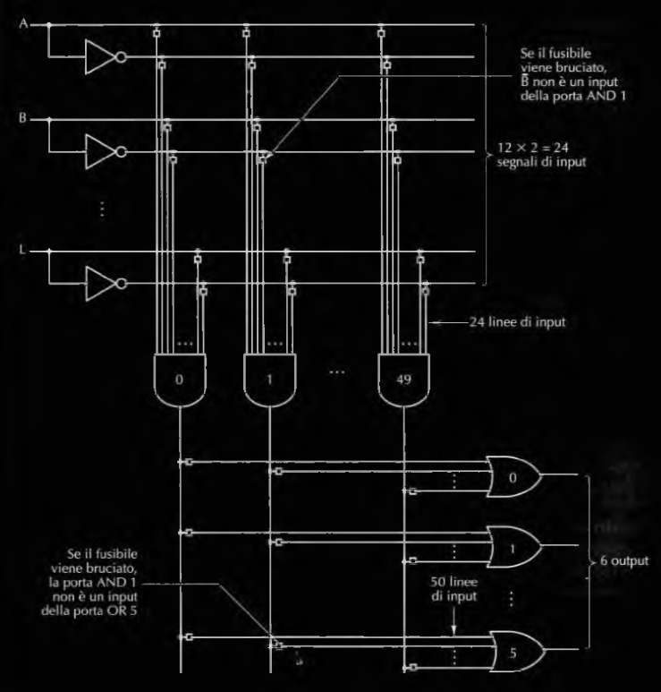 - ogni porta OR prende in input l’uscita di tutte le 50 porte AND del primo stadio, anche qui le connessioni cono stabilite con i fusibili