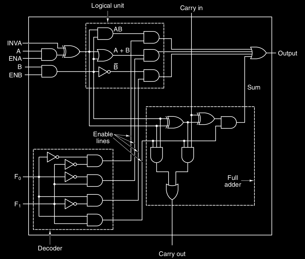 La ALU ( ad 1-bit ) contiene 3 unità principali :