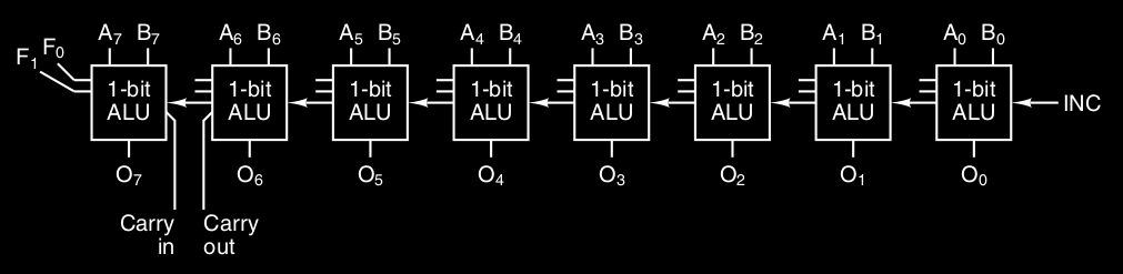 ALU a 8-bit costruito con 8 ALU da 1-bit ognuna :