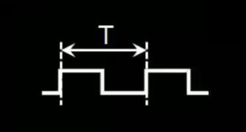 Ogni intervallo compreso tra le due estremità di due impulsi consecutivi è chiamato ==ciclo di clock== o periodo ( T ) :