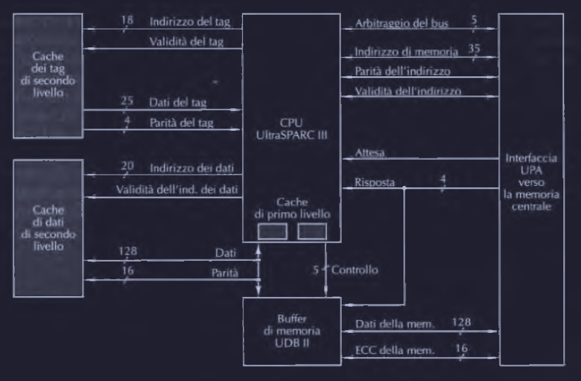 La figura mostra il nucleo di un sistema UltraSPARC III dove sono presenti :