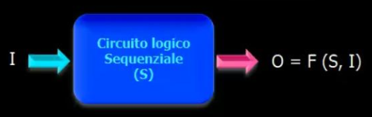 Un componente principale di ogni computer è la memoria, utilizzata per memorizzare le istruzioni da eseguire e i dati. Iniziamo ad analizzare la memoria dalle porte logiche per capire come funzionano. Per costruire un circuito che memorizzi dei dati ( finché è alimentato ), dobbiamo utilizzare i circuiti sequenziali ovvero quei circuiti che il loro output (O) non dipende solo dall’input attuale (I) ma anche dallo stato del circuito (S) :