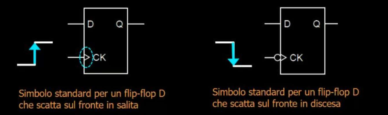 dove il primo cambia stato nel fronte di salita del clock ( da 0 a 1 ) e viceversa il secondo (d).