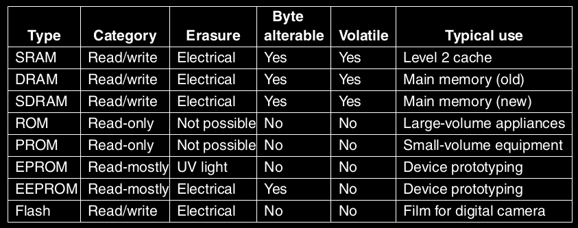 Vediamo ora una comparazione dei vari tipi di memorie viste fino ad ora :