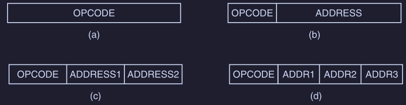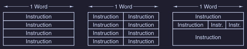 Alcune macchine hanno istruzioni della stessa lunghezza e altre invece di lunghezza diversa. Avere della stessa lunghezza semplifica la loro decodifica ma implica uno spreco di spazio. La seguente figura mostra infatti alcune relazioni che possono esserci tra la lunghezza delle istruzioni e la dimensione della word :