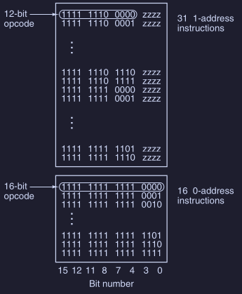 - utilizzo 12+4 = 16 bit per avere 16 istruzioni con 0 indirizzi