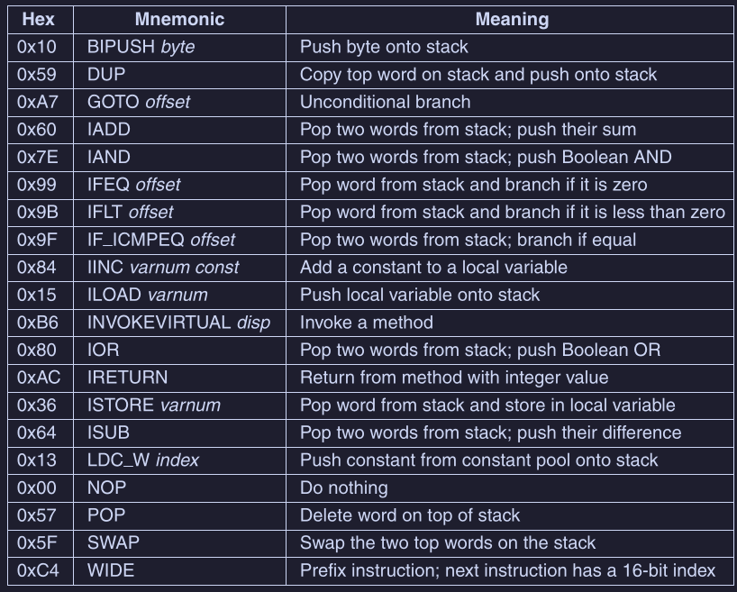 La seguente figura mostra l’insieme delle istruzioni IJVM :