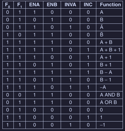 F0,F1: selezionare il tipo di funzioneENx: abilita l’inputx(AeB)INVA: invertire l’input di sx, quindi diAINC: incrementare di 1 il risultato