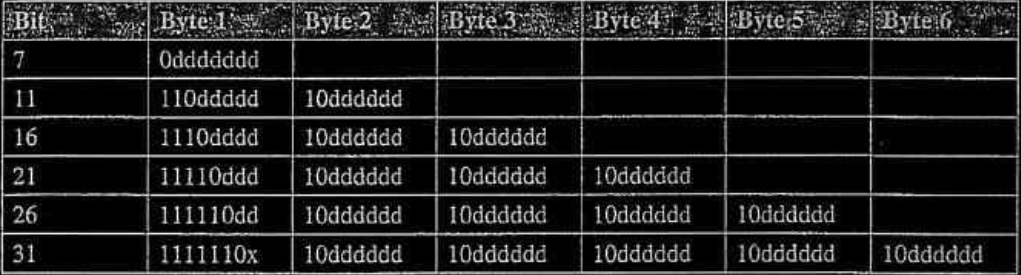 - se si necessitano più byte, il secondo byte dopo il primo inizia sempre con