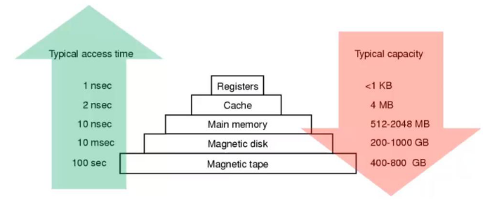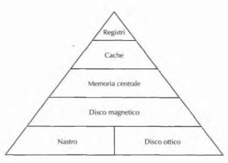 Infatti i registri della CPU sono le memorie piu piccole ( ordine dei byte ), più veloci ( ordine dei ns ) e le più costose. Mentre i nastri magnetici e i dischi ottici sono le memorie più grandi, lente ed economiche - ovviamente la capacità dipende dal budget disponibile all’utente.