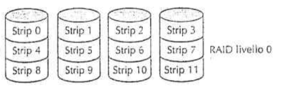 Inoltre i RAID hanno la possibilità di distribuire i dati sulle diverse unità per garantire la gestione parallela, per questo ci sono diversi schemi RAID → RAID di livello 0 - RAID di livello 5.