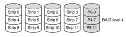 Il RAID di livello 4 ha un disco aggiuntivo dedicato alla parità.