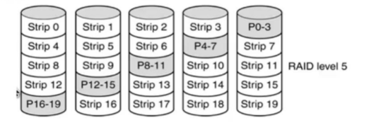Il RAID di livello 4 e RAID di livello 5 sono simili al RAID 0, siccome lavorano con le strisce e non richiedono che i dischi siano sincronizzati.